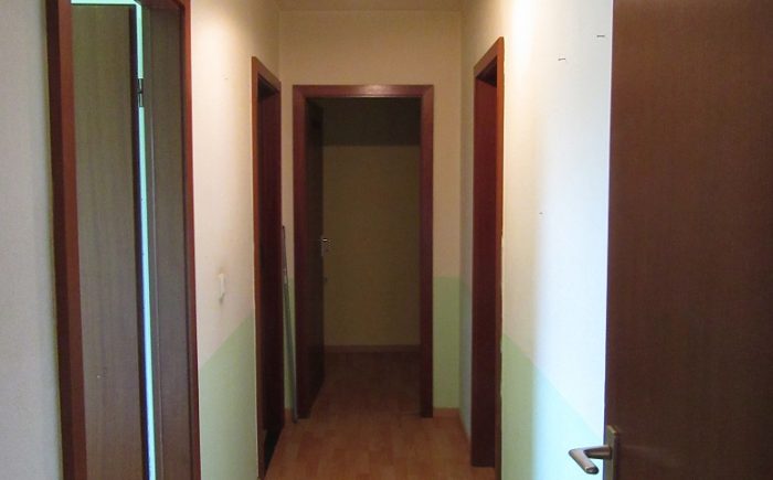Die Wohnung verfügt über ein Wohnzimmer mit großem Fenster und einem Ausgang zum Balkon, ein Schlafzimmer mit ausreichender Stellfläche, sowie ein Kinderzimmer, eine Küche, eine Diele, ein Badezimmer mit WC, Waschbecken und eine Wanne sowie ein Gäste Wc mit Dusche.