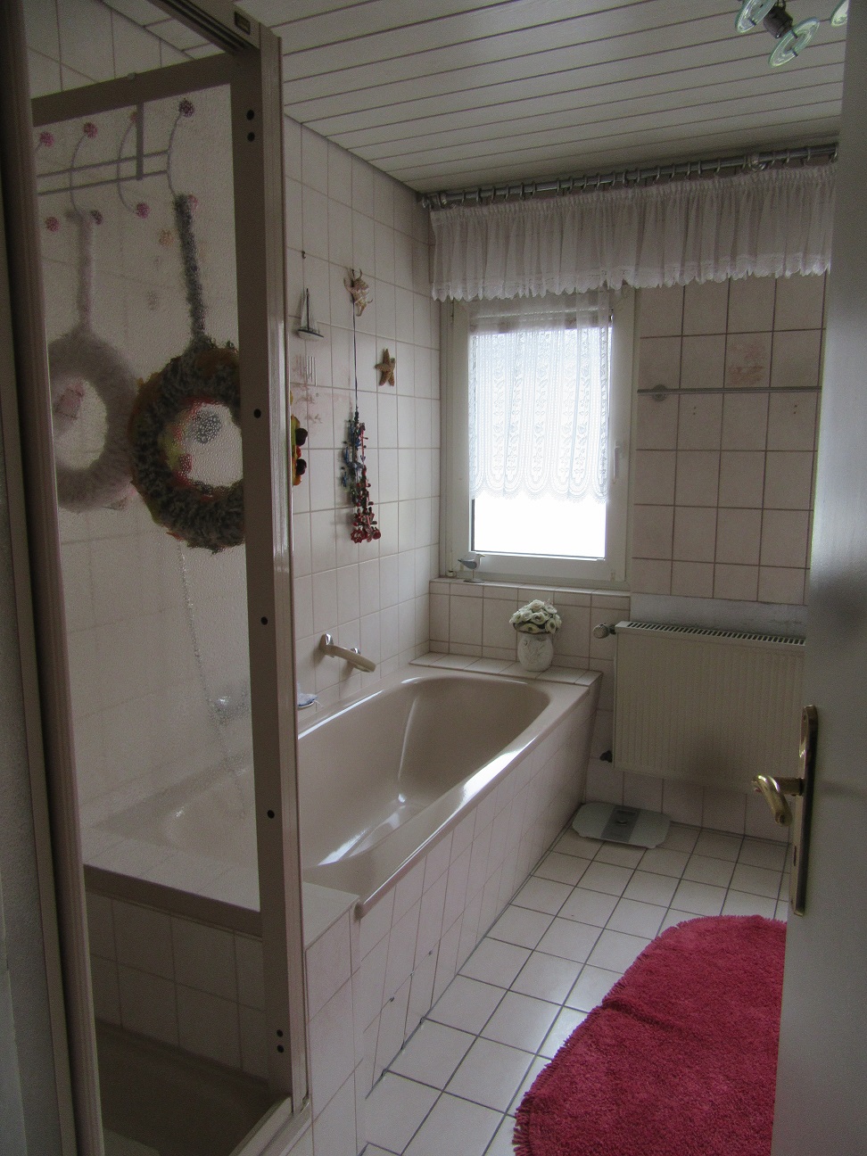 Die Ausstattung umfasst Fliesen, Teppich und PVC-Böden.